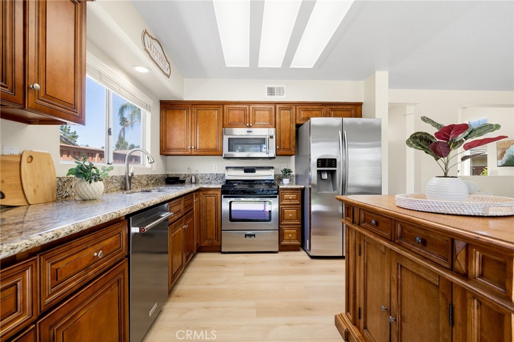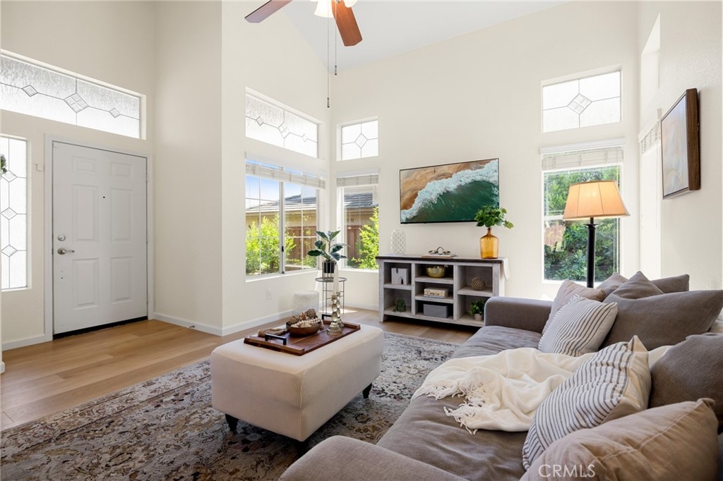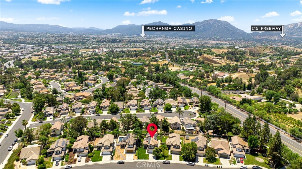 Luxury living in Temecula just became affordable in this remodeled 4 bedroom, 3 bath home in the highly desirable community of Paloma Del Sol, in the heart of Temecula. Enjoy living in a community based on outdoor lifestyles within walking distance to local parks, schools, shopping and minutes to the wineries, Pechanga Casino and the mall. No stone was unturned in this stunning 1775 sqft home which features high end upgrades with every feature meticulously thought out. As you enter the property which features mountain views on a cul-de-sac you are greeted by lush grass spanning on either side of the 5200 sqft lot, a 2 car garage and owned solar. As you enter the home you are greeted by tall ceilings, custom paint, new LVP floors and tall baseboards, and a sought after floor plan which flows from the formal living area with large windows to the open formal dining area. The cozy family room is appointed with a gas fireplace and areas for storage. The gourmet kitchen has been upgraded with granite counters, high end stainless steel appliances including a new dishwasher, designer cabinets, and a rolling kitchen island to match. The main floor powder room features a new vanity, paint and stand alone mirror which is adjacent to the 2 car garage which houses the laundry area. The second story boasts plush carpet and overlooks the main floor. The three secondary bedrooms are all large with gorgeous views, mirrored closet doors, plush carpet and custom paint. They share an upgraded bath boasting tile floors, granite counter vanity, stand alone mirror and tub shower combo. The gorgeous master is appointed with cathedral ceilings, custom paint, glass sliding doors that leads to a brand new deck with stunning views and features an attached bath with tile floors, a walk-in closet, granite counter dual vanity, new custom mirrors and lighting, and a shower tub combo. The gorgeous entertainers yard, is landscaped with lush grass, mature fruit trees, privacy hedges, updated irrigation, concrete for entertaining and can easily fit a generous size pool! The home has been recently upgraded to include 7 new windows throughout, freshly painted bathrooms and stair banister, new garbage disposal, ring security doorbell, wash sink added in the laundry area, EV charging capability in the garage, 2 year old furnace and AC and water heater. The community features 5 pools and spas, trails, tennis and basketball courts, picnic areas, tot lots, parks, and is located in Temecula VUSD.